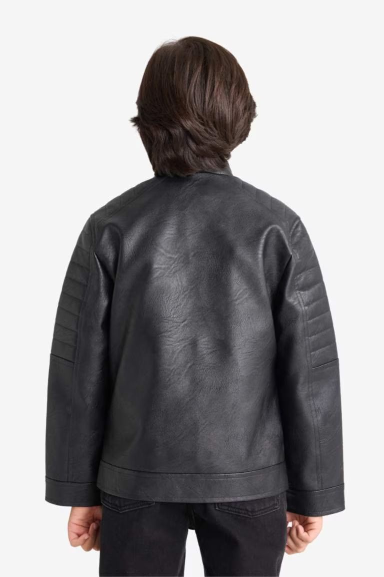 F6154A8/BK27 Defacto Erkek Çocuk Deri Mont