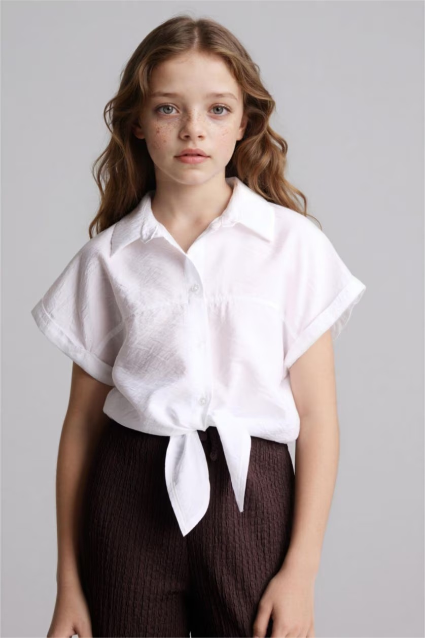 H1519A8/WT34 Defacto Kız Çocuk Kısa Kol Gömlek