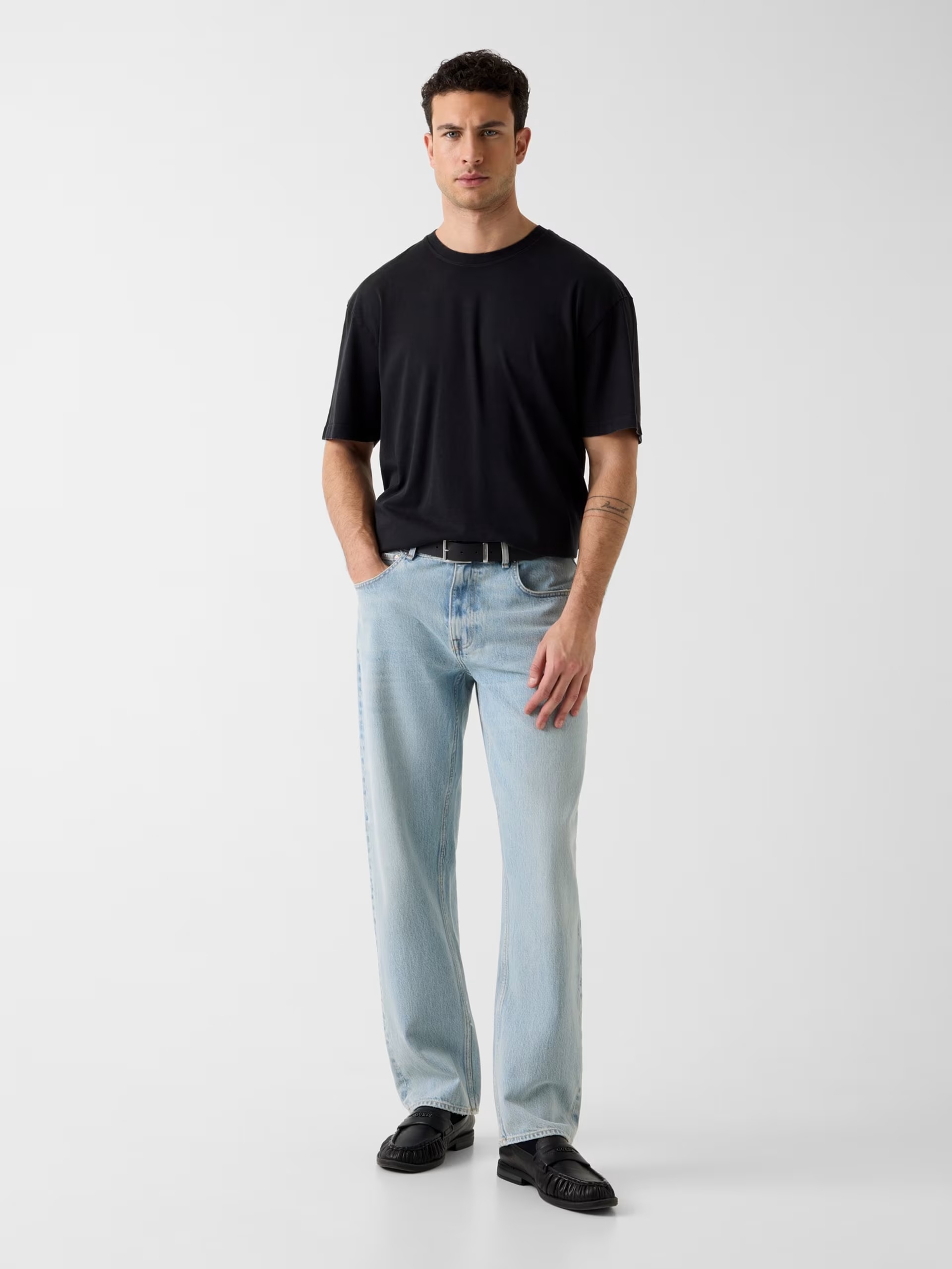 26YGT4000145_GT4003 M6GI18K3050-JBLK Cn Ss Acıd Wash Oversıze Tee Guess Erkek T-shirt