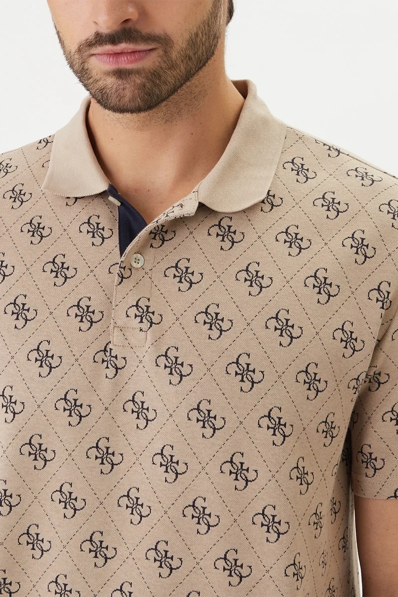 26YGT4000152_GT4006 M6GP04K3073-FMAZ Ss All Over 4G Jacqaurd Polo Guess Erkek T-shirt