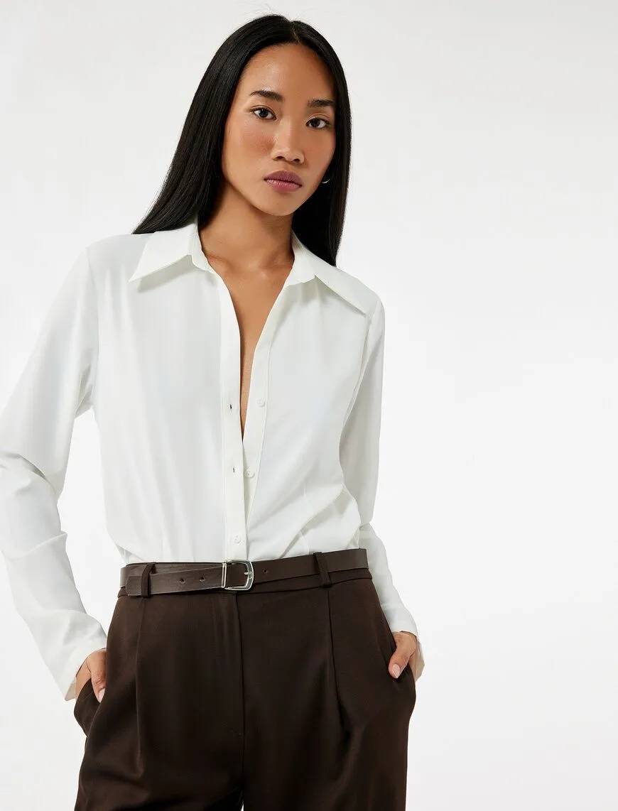 6WAK60006PW Koton Kadın Uzun Kol Gömlek