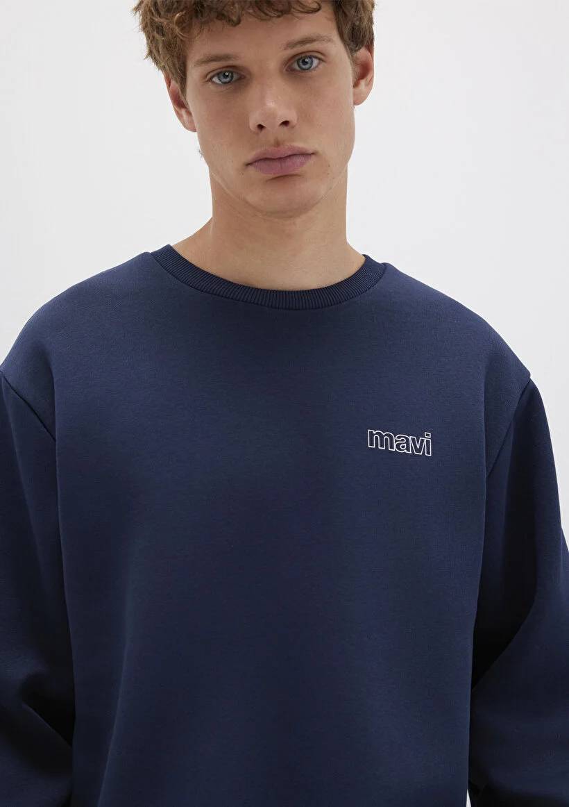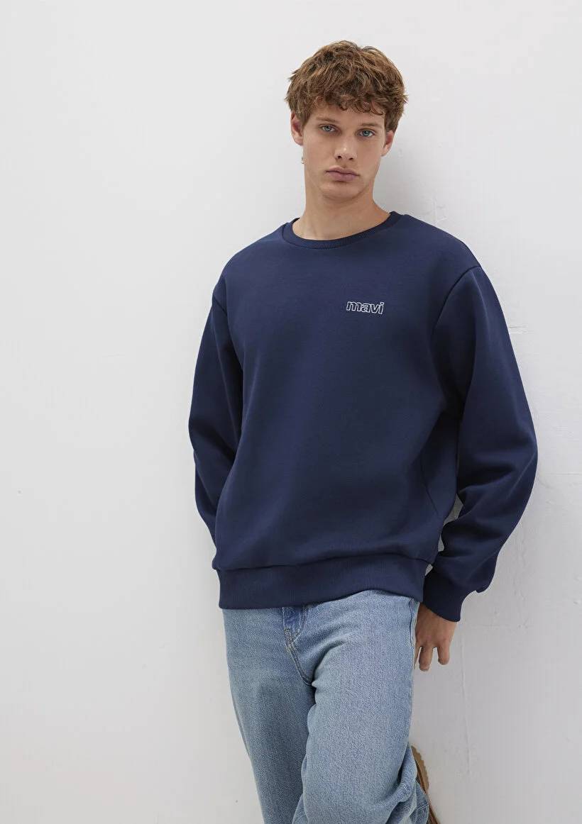 M0S10379-70488 Mavi Baskılı Erkek Sweat