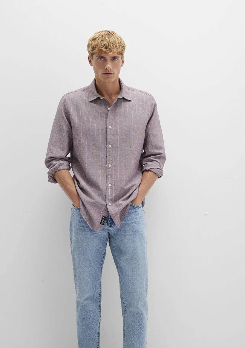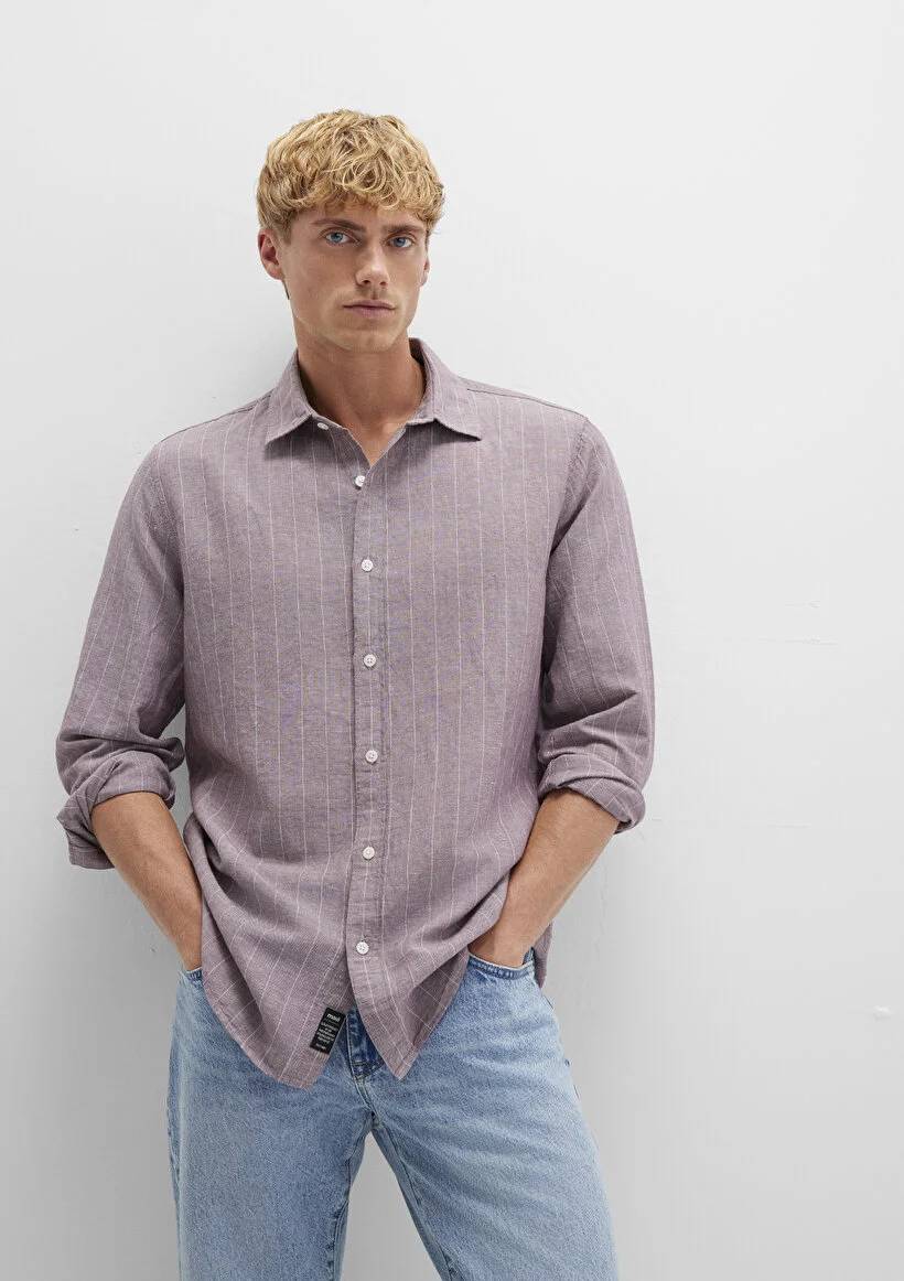 M0211704-90926 Mavi Çizgili Erkek Gömlek