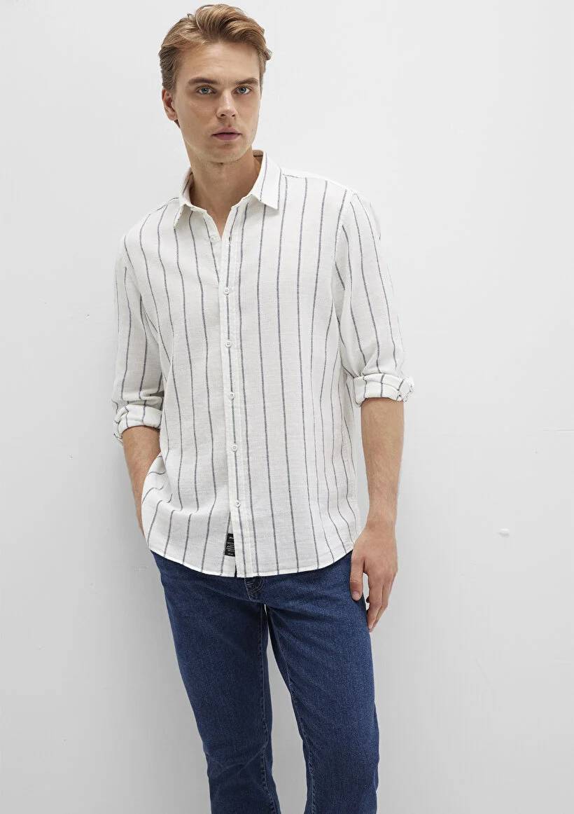 M0211712-90938 Mavi Çizgili Erkek Gömlek