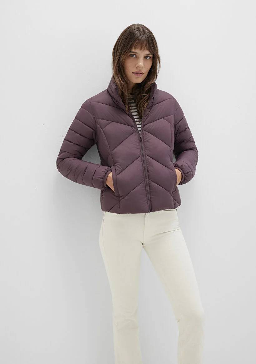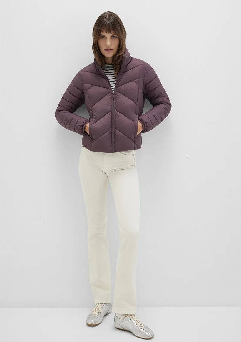 M110698-70260 Mavi Dik Yaka Kadın Mont