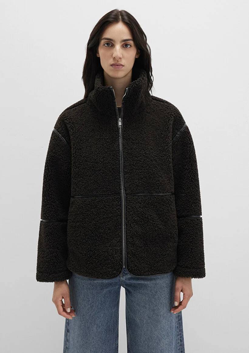 M1110719-70219 Mavi Dik Yaka Kadın Mont