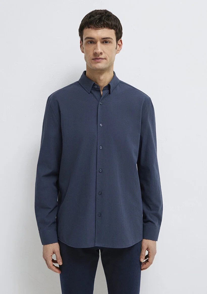 26Y134002496_134M10 M0211554-87822 Mavi Erkek Uzun Kol Gömlek