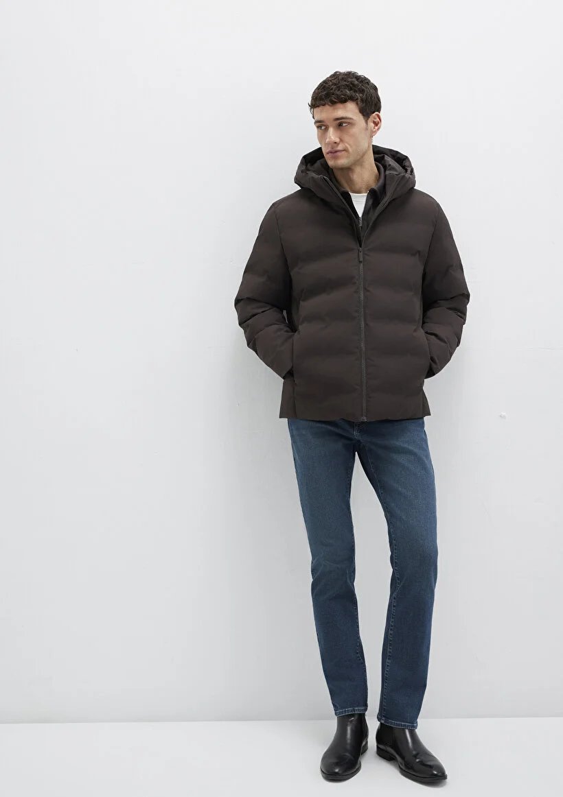 M0110652-70219 Mavi Kapüşonlu Erkek Mont
