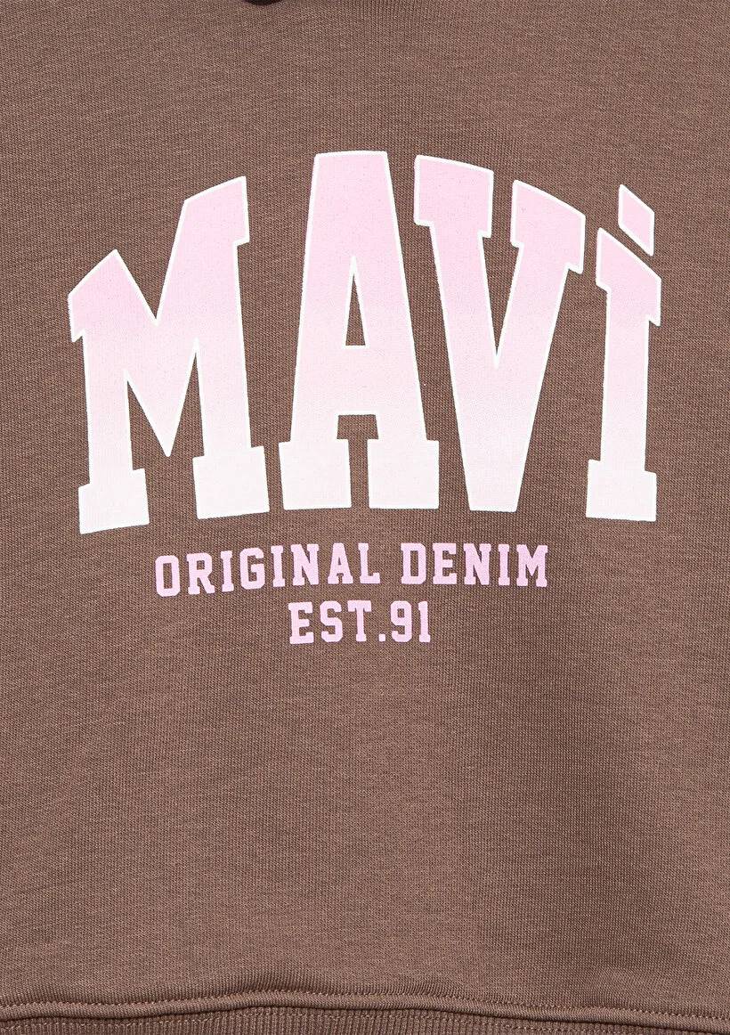 M7S10124-87181 Mavi Logo Baskılı Kız Çocuk Sweat