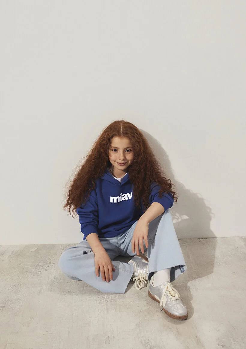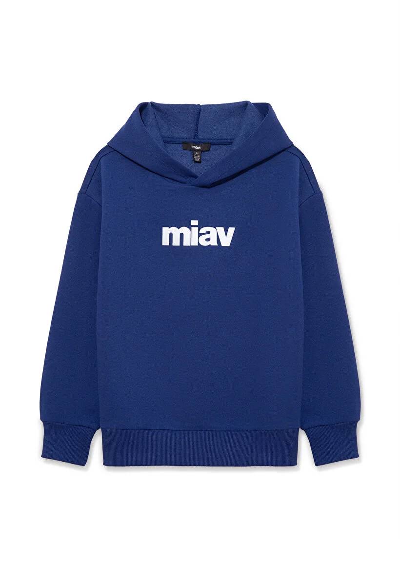 M6S10028-70722 Mavi Miav Baskılı Kapüşonlu Erkek Çocuk Sweat