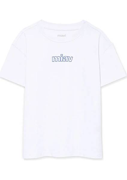 M7610158-620 Mavi Mıav Baskılı Kız Çocuk T-shirt