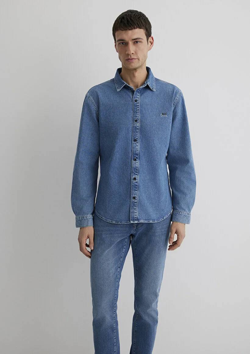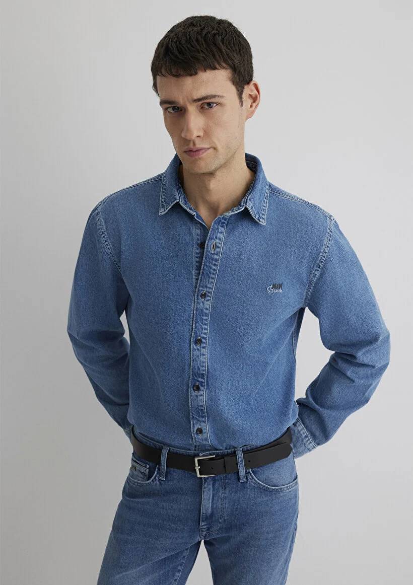M0210496-87937 Mavi Roy Vintage Erkek Gömlek