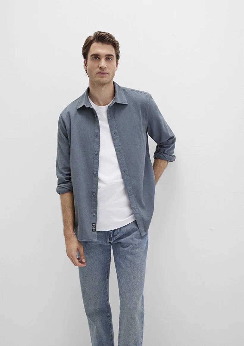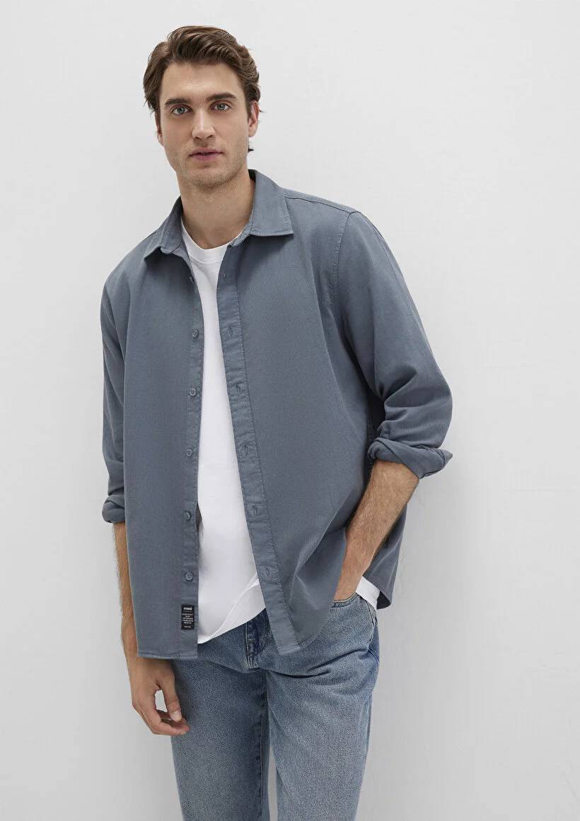 M0211641-80889 Mavi Uzun Kol Erkek Gömlek