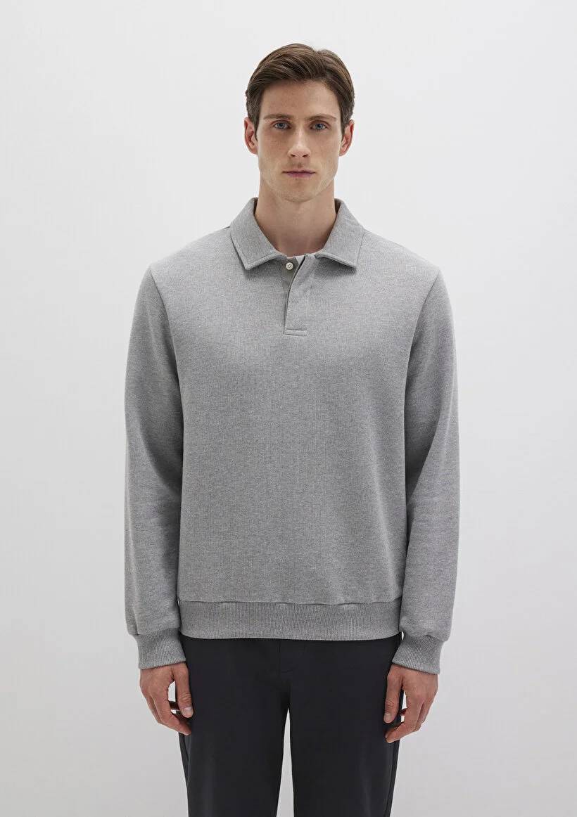 M0S10420-80018 Mavi Yarım Düğmeli Erkek Sweat