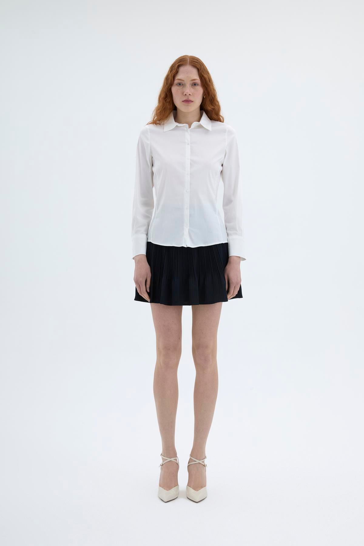 11724 Quzu Slim Fit Kadın Gömlek
