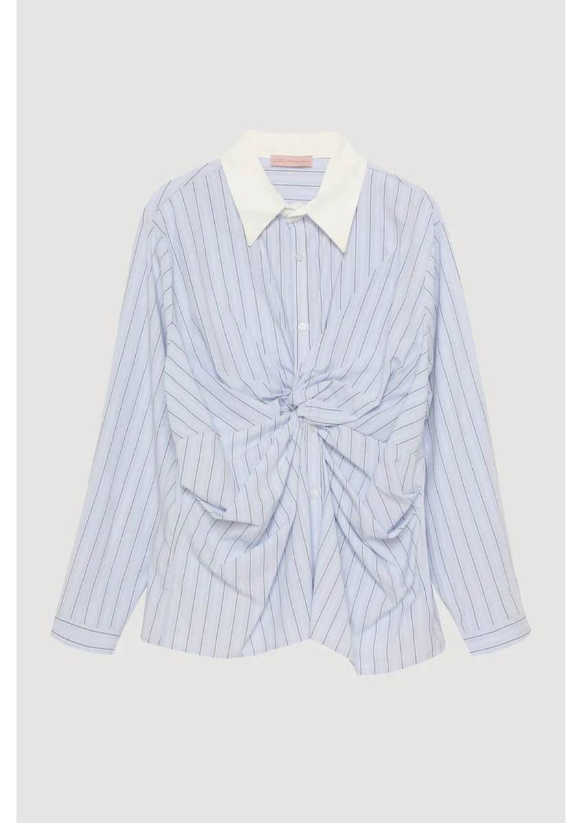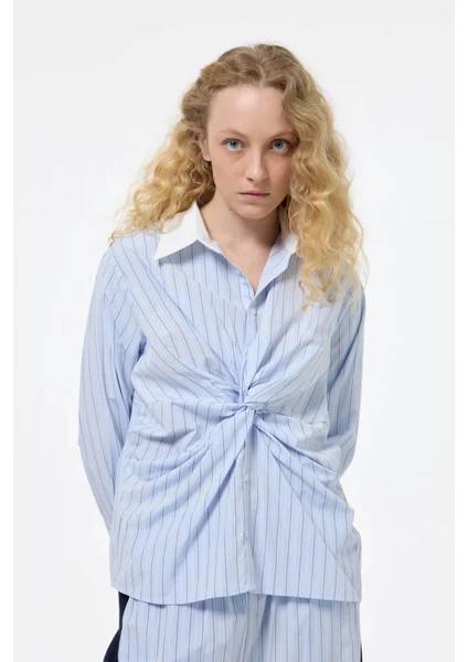 GML00272 Quzu Önü Düğüm Detaylı Kadın Gömlek