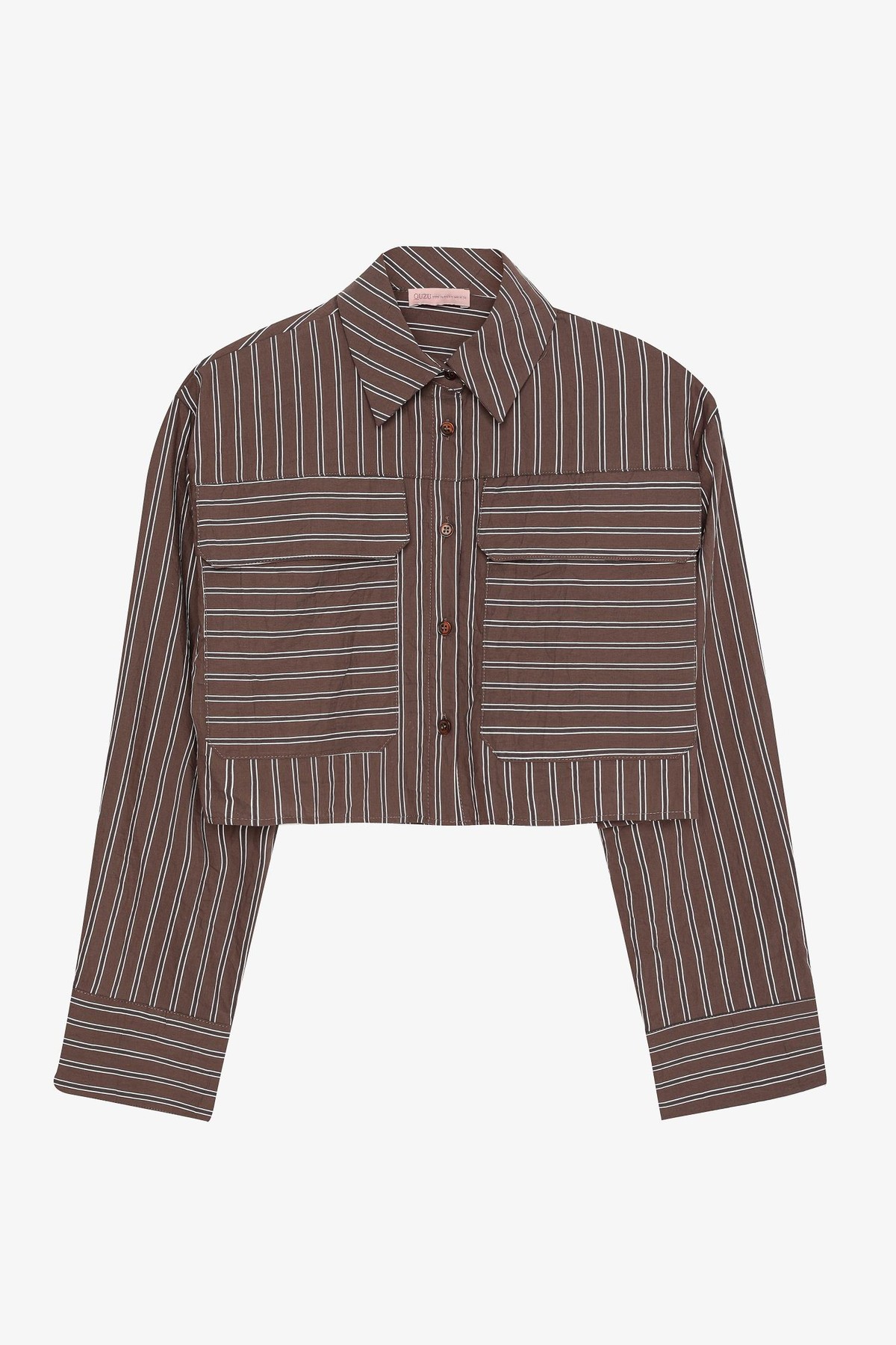 GML01115 Quzu Cepli Çizgili Kadın Gömlek
