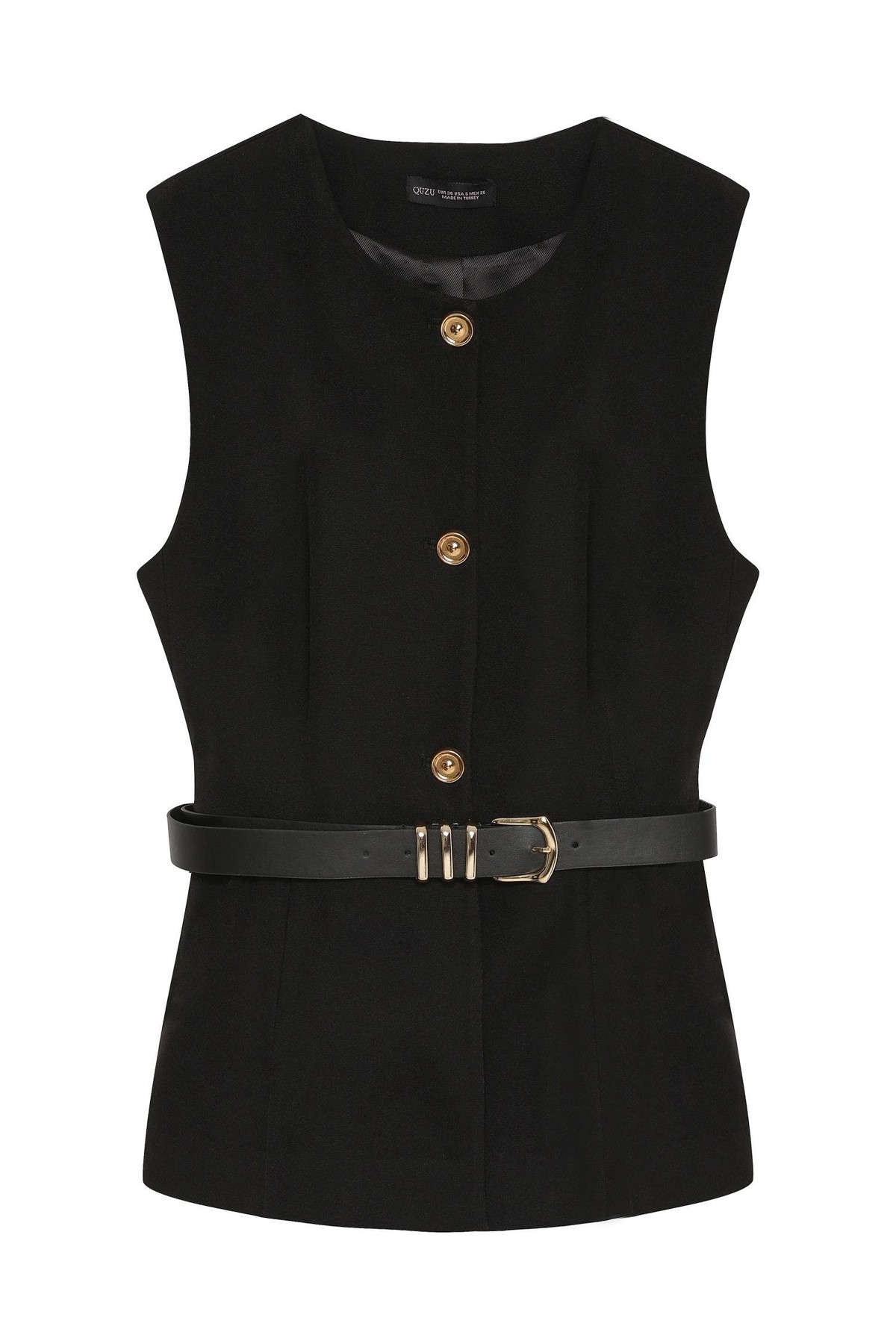 YLK00163 Quzu Bisiklet Yaka Kemerli Kadın Yelek