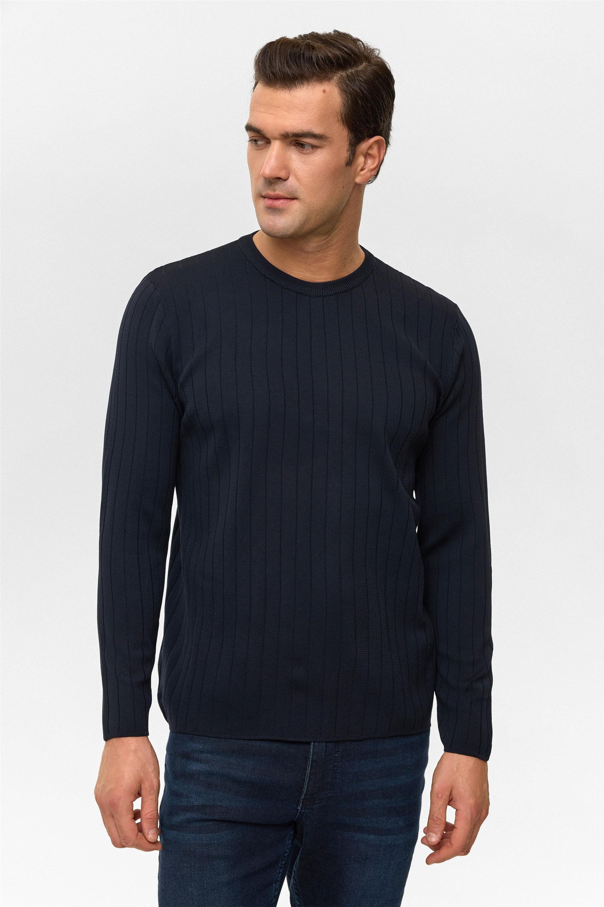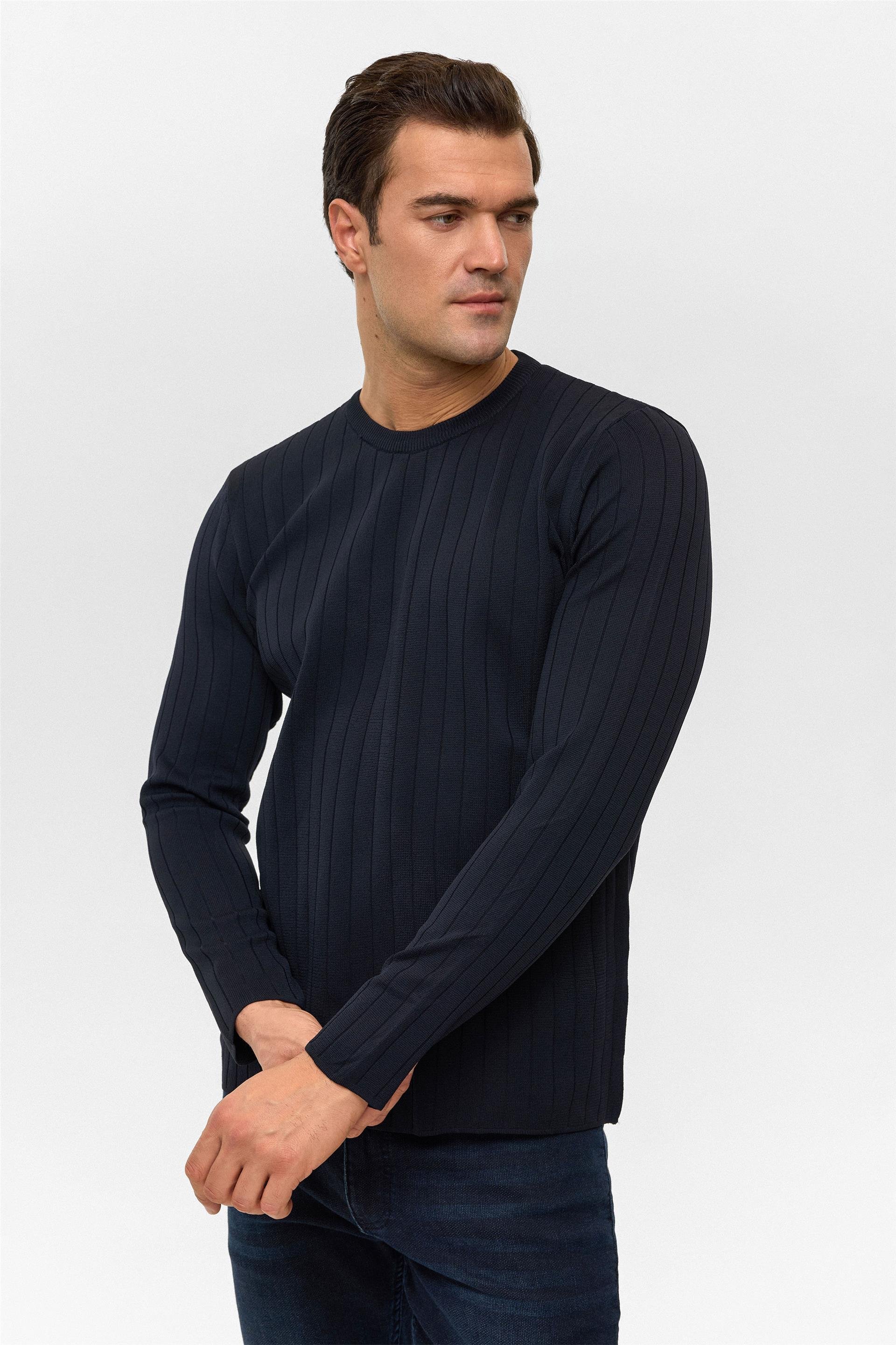 TR2013700482 Süvari Desenli O Yaka Uzun Kol Trikol Erkek Kazak