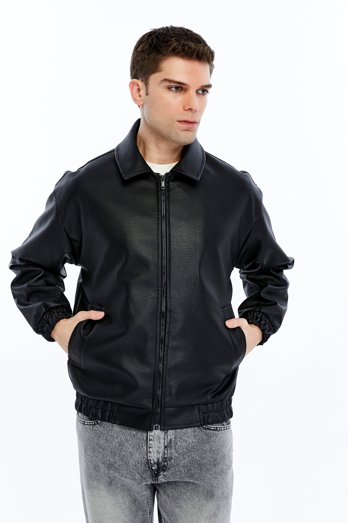 933 Bebe Yaka Erkek Deri Mont ve Ceket