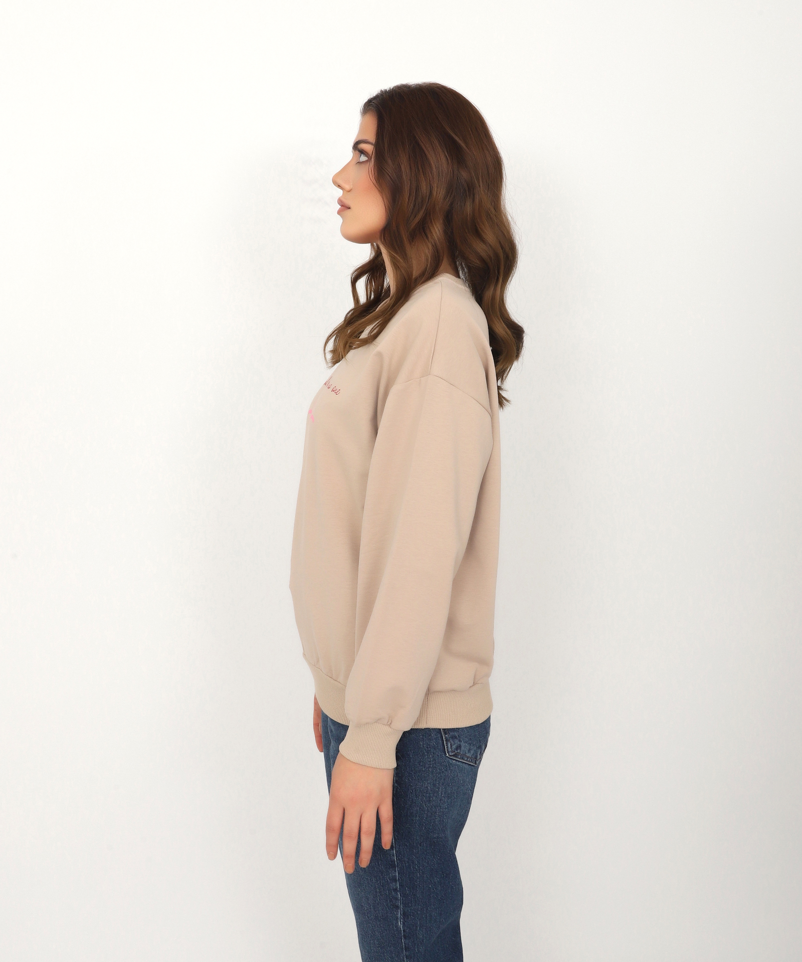 Kurdele Nakış Baskı 2 İp Kadın Sweat