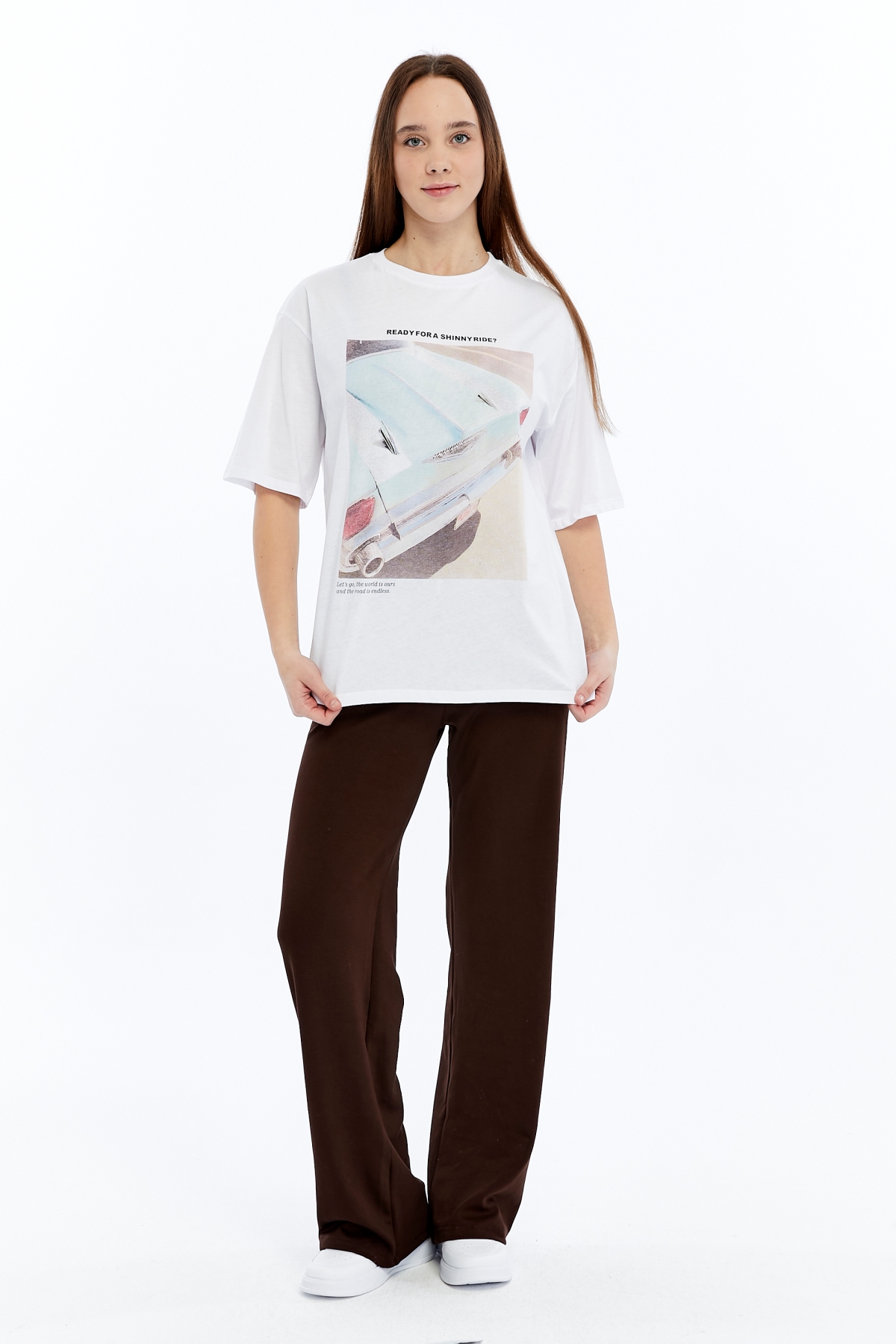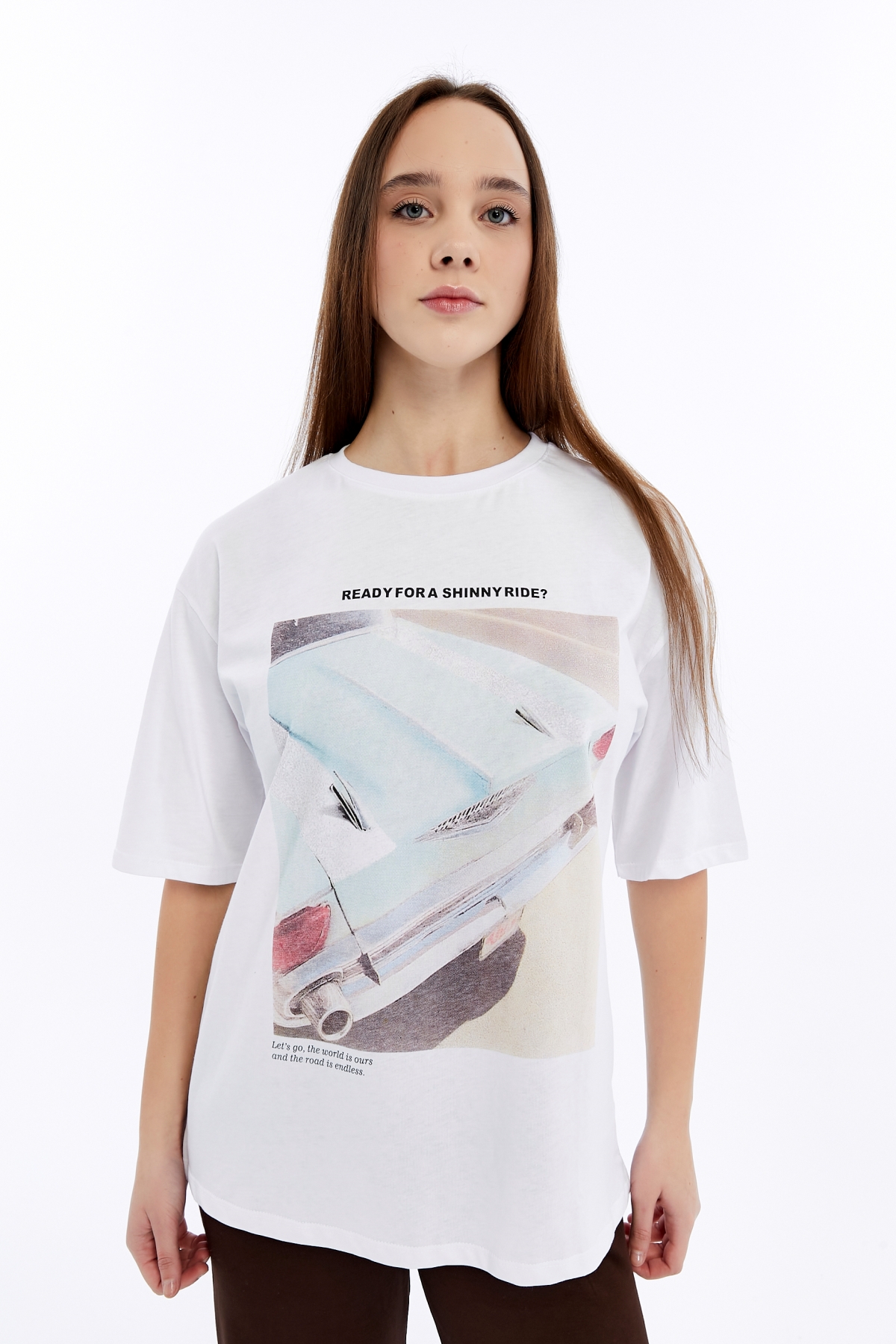 • Ürün Adı : 6789 (N-2440) Mavi Araba Baskılı  Kadın T-Shirt