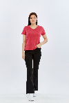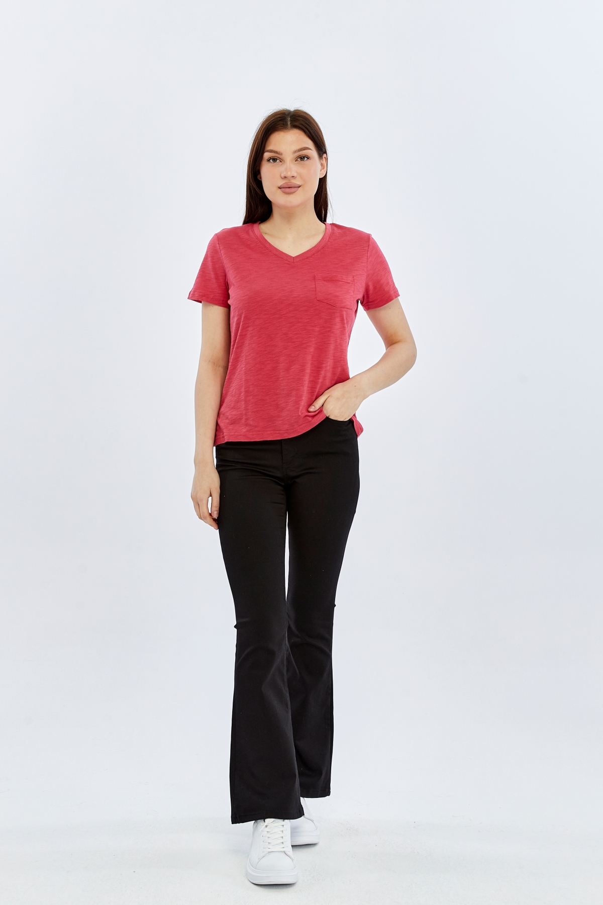26YAO6000081_84 Viole&More 1001 Flamlı Cepli V Yaka Kadın T-shirt