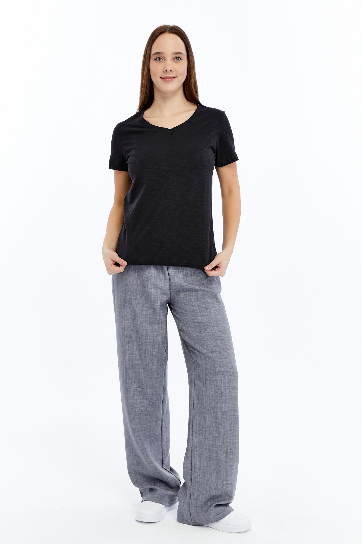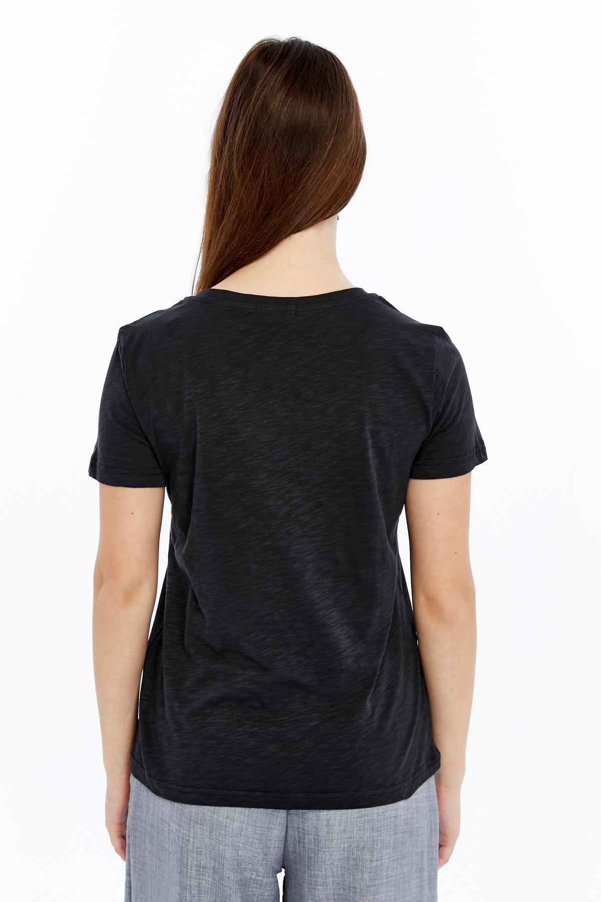 26YAO6000082_01 Viole&More 1002 Flamlı V Yaka Kadın T-shirt