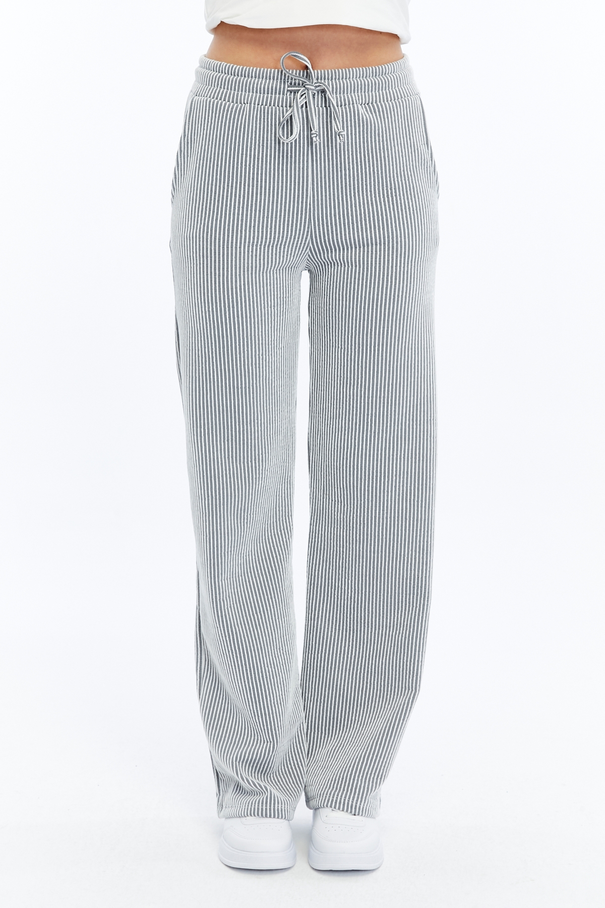 26YCE8000009_01 2497 Çizgili Viole&More Kadın Kanvas Pantolon