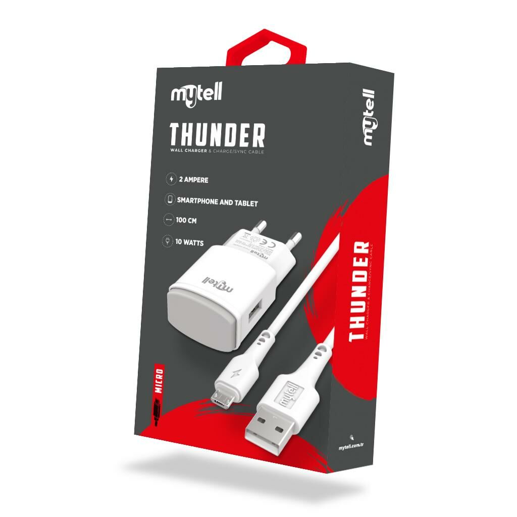 Mytell Micro Şarj Seti MY-C10 Thunder 2in1 2000 mAh Beyaz Gri