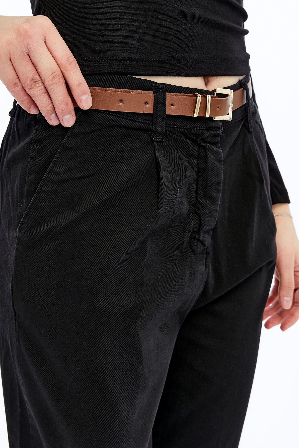 26YTG5000031_01 5335 Kemerli Kadın Kanvas Pantolon