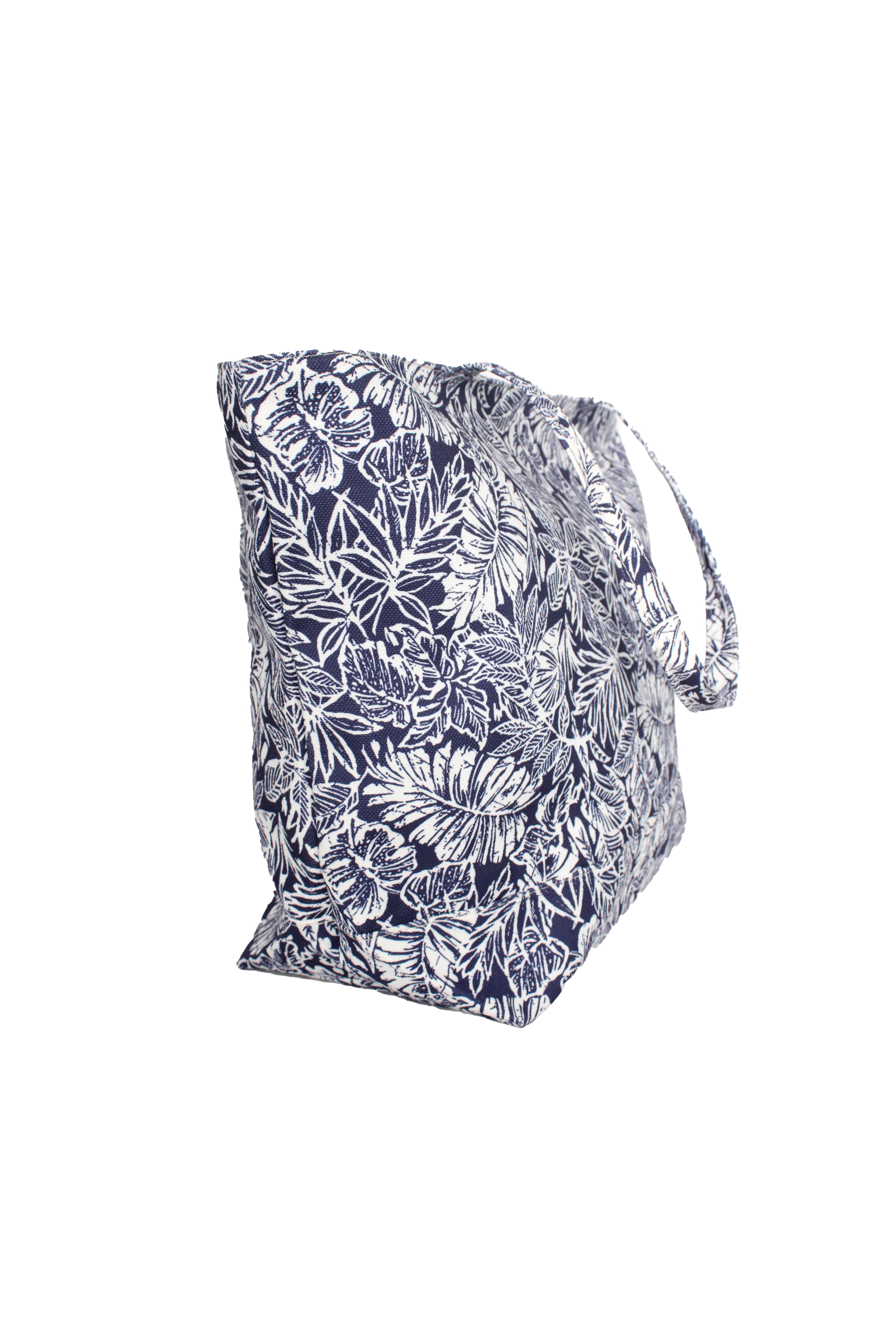Siyah Beyaz Yaprak Desenli Plaj Çantası