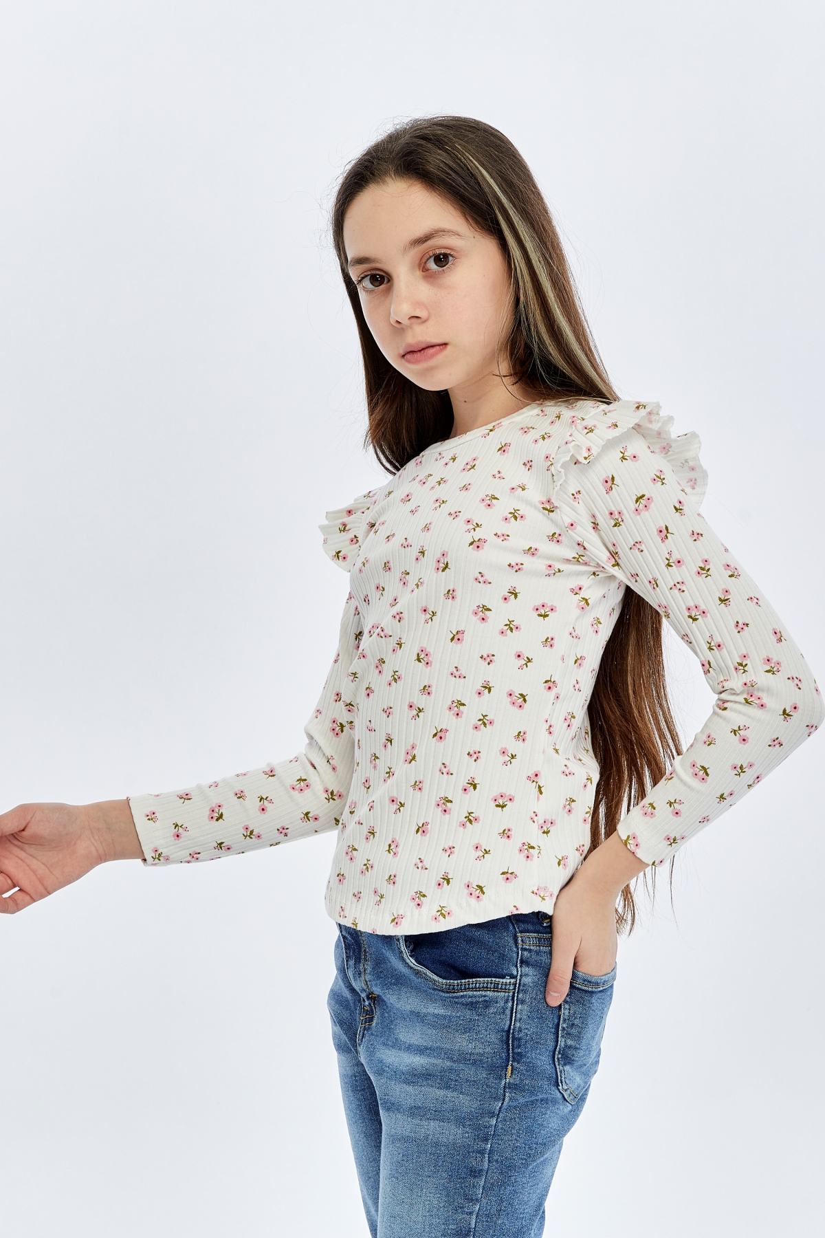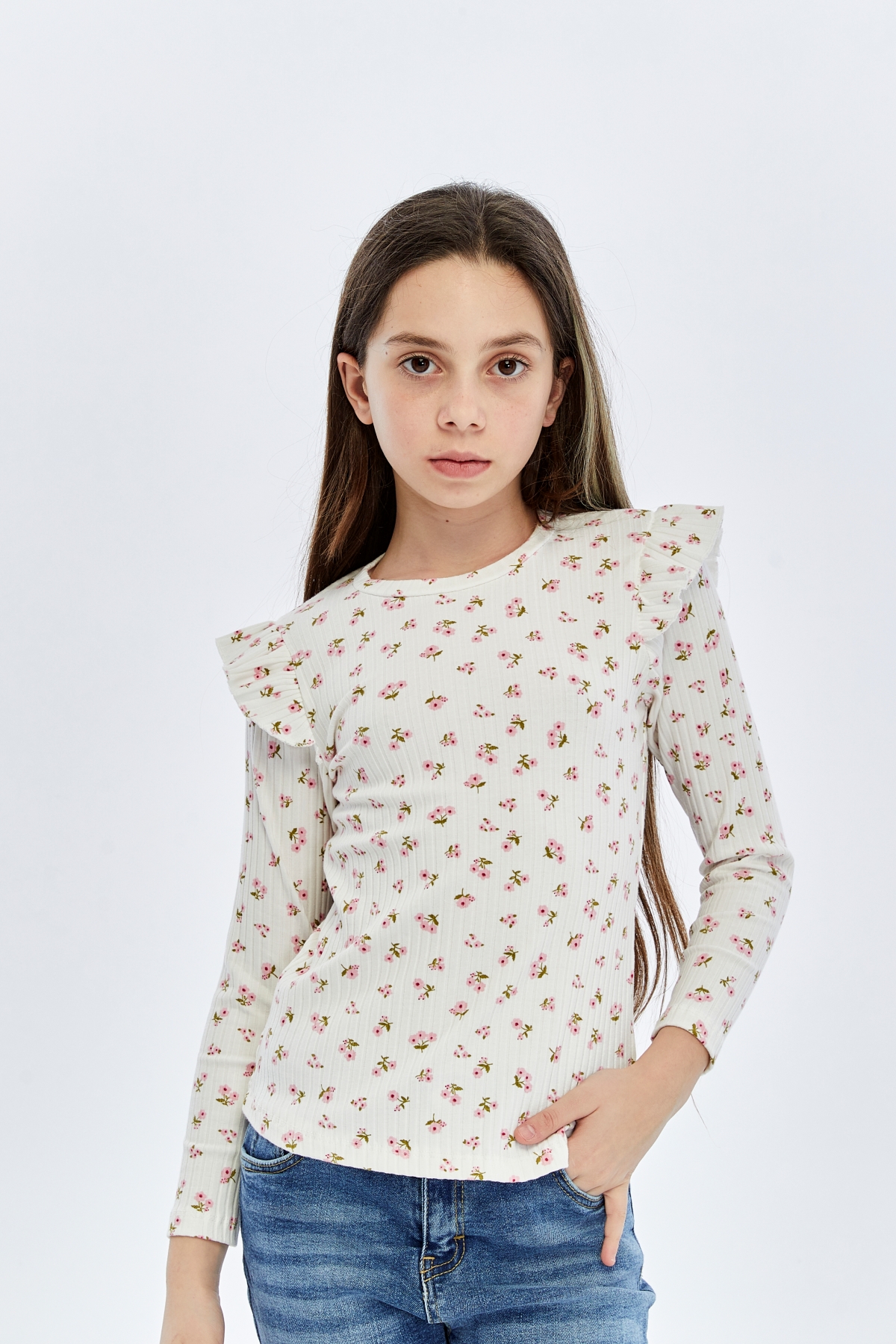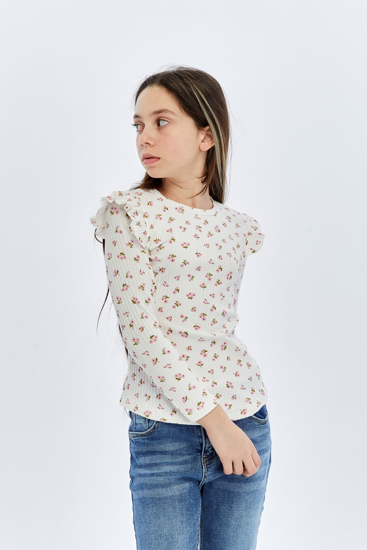26YMK7000004_12 Çiçek Baskı 3-11 Yaş Kız Çocuk Body