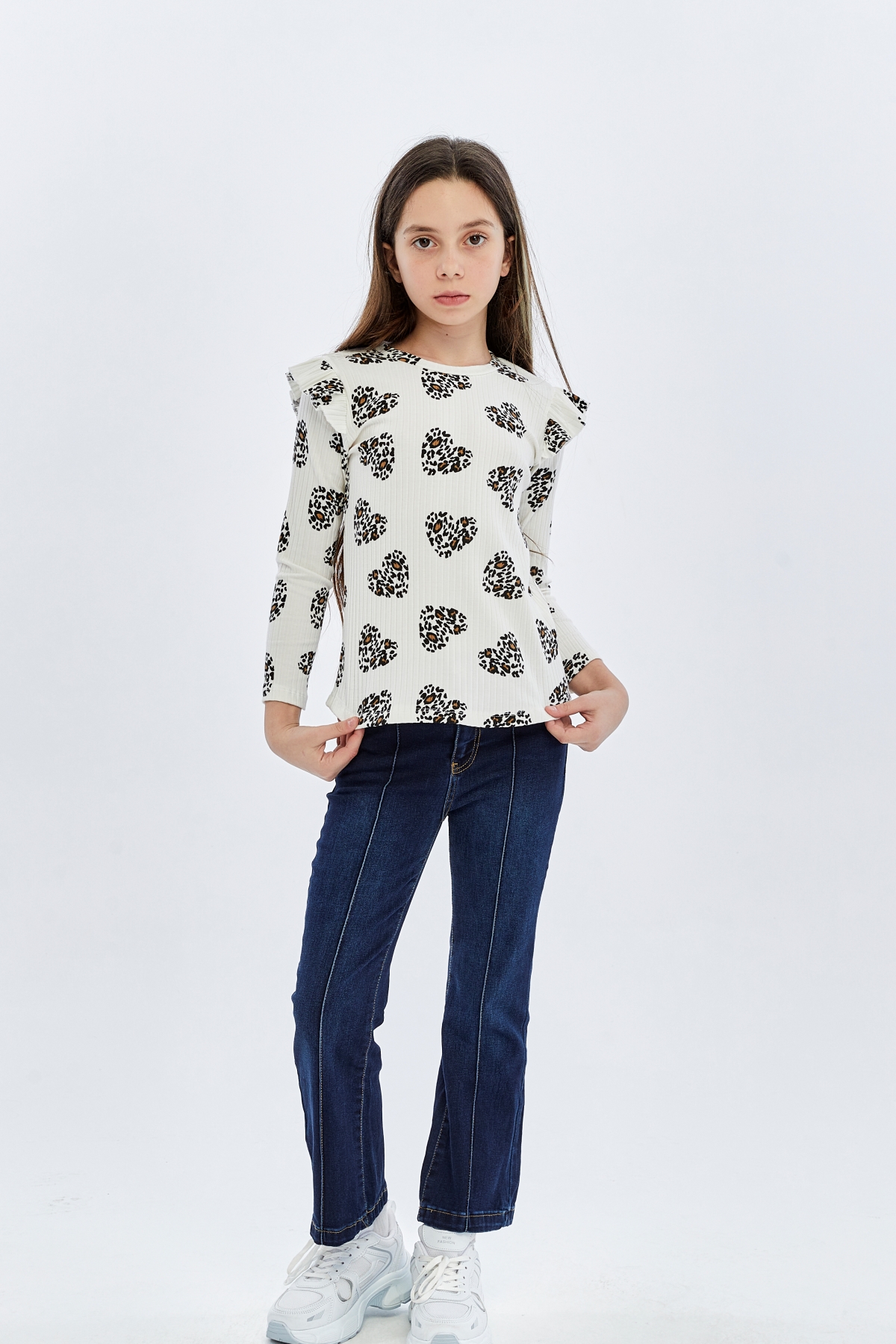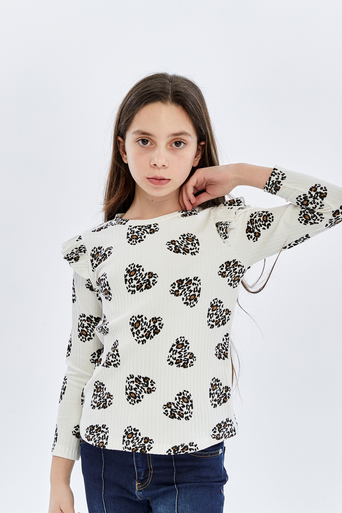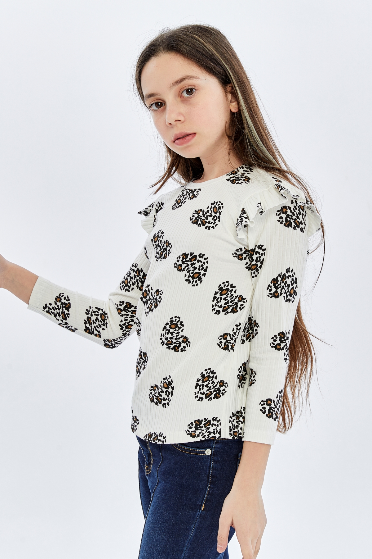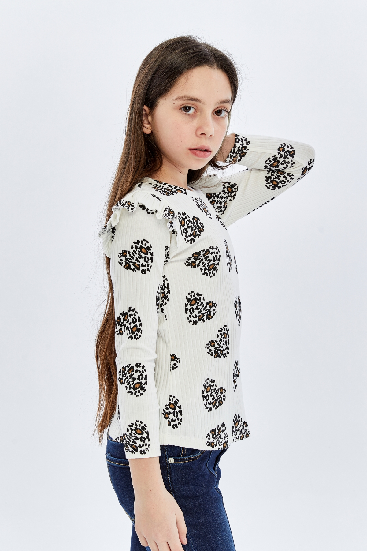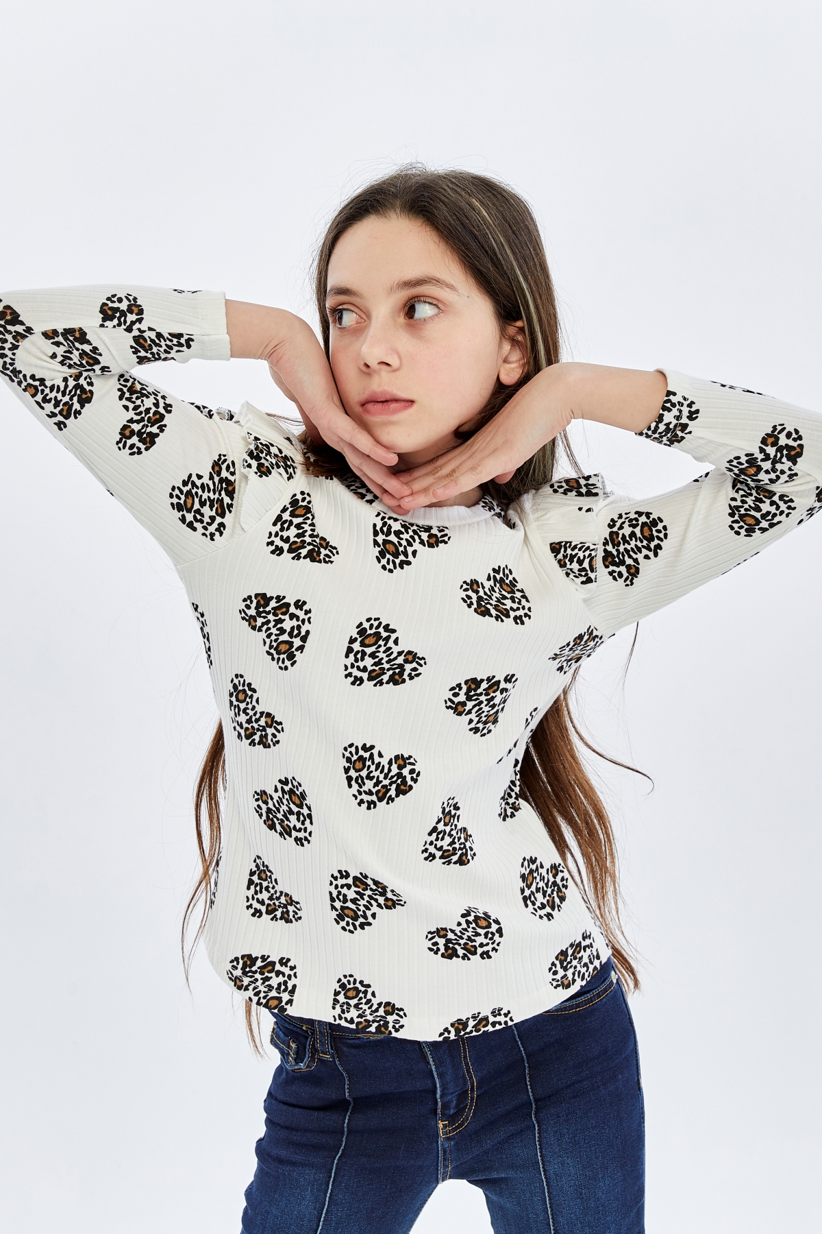 26YMK7000005_12 Kalp Leopar Desen 3-11 Yaş Kız Çocuk Body
