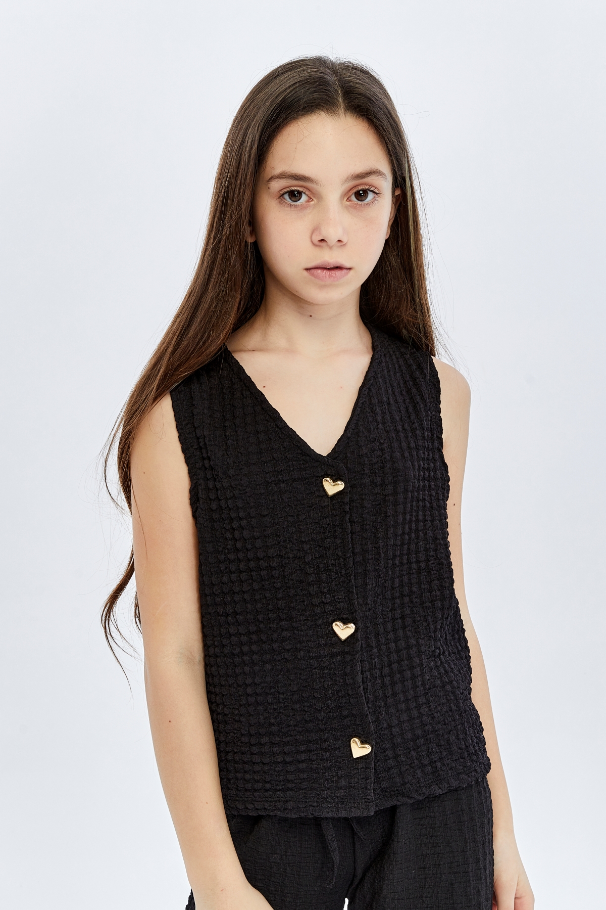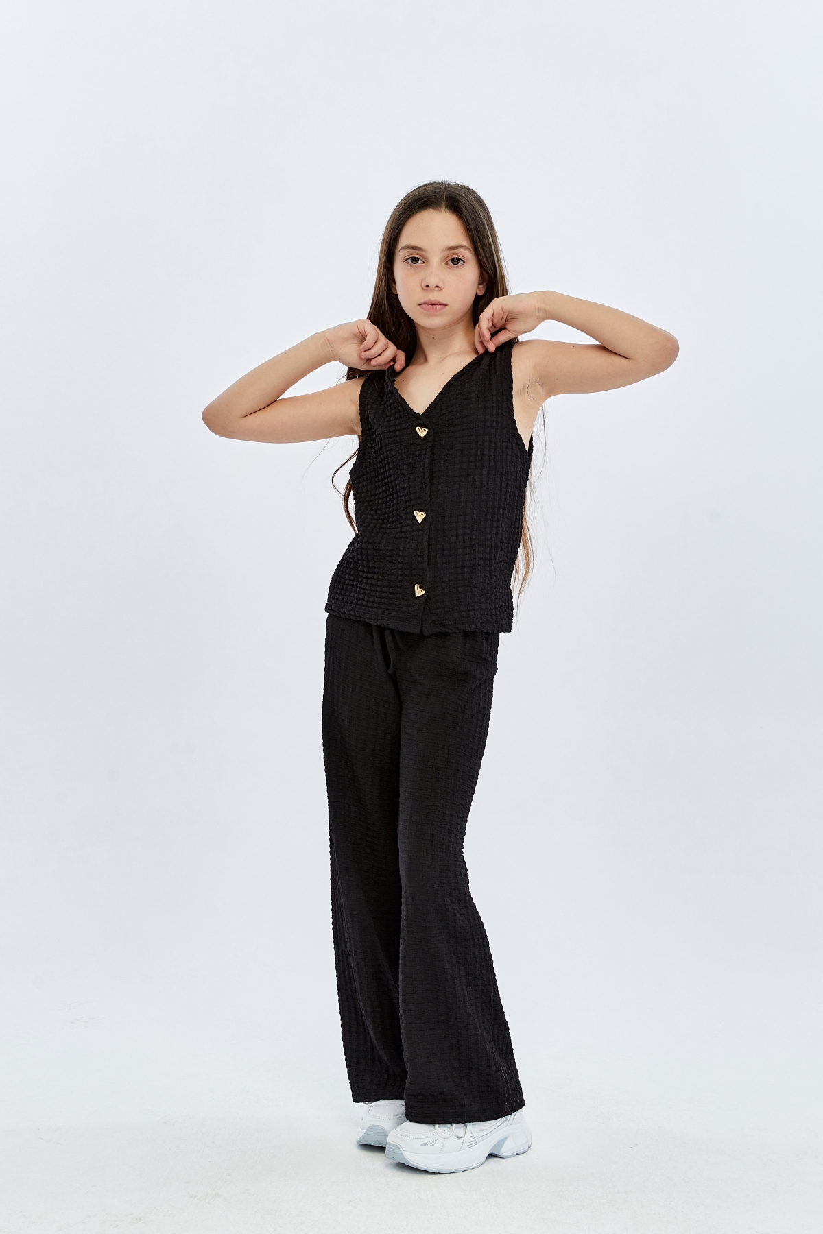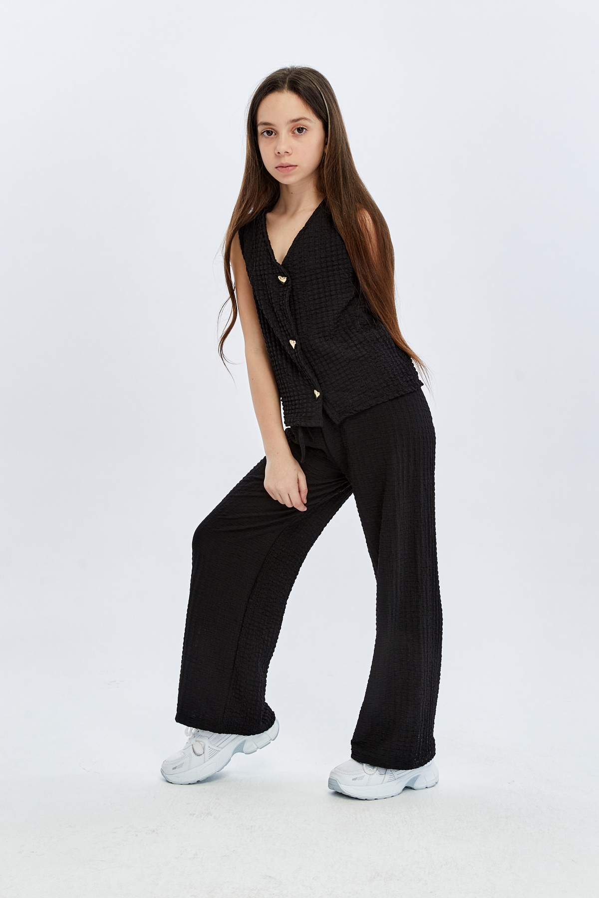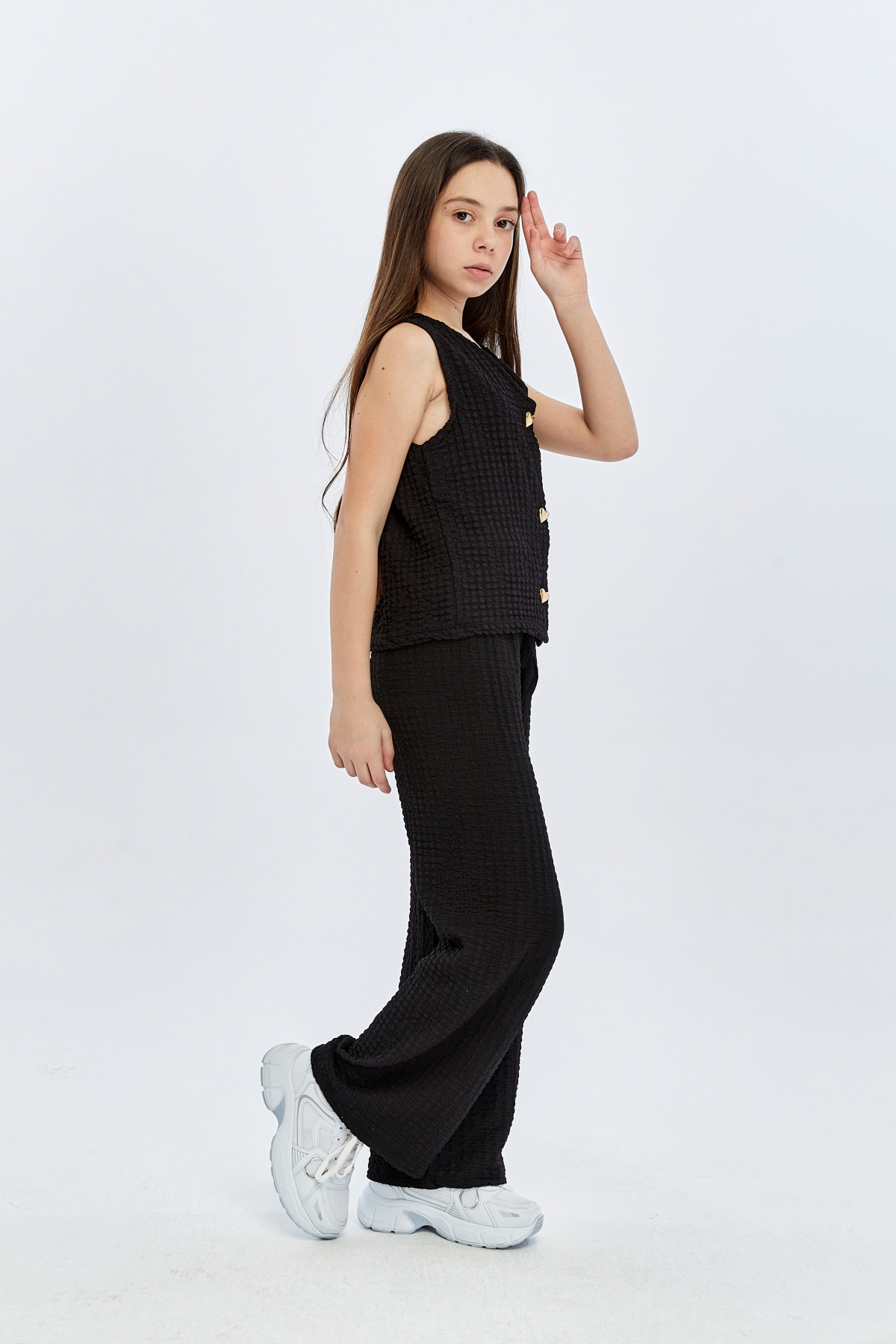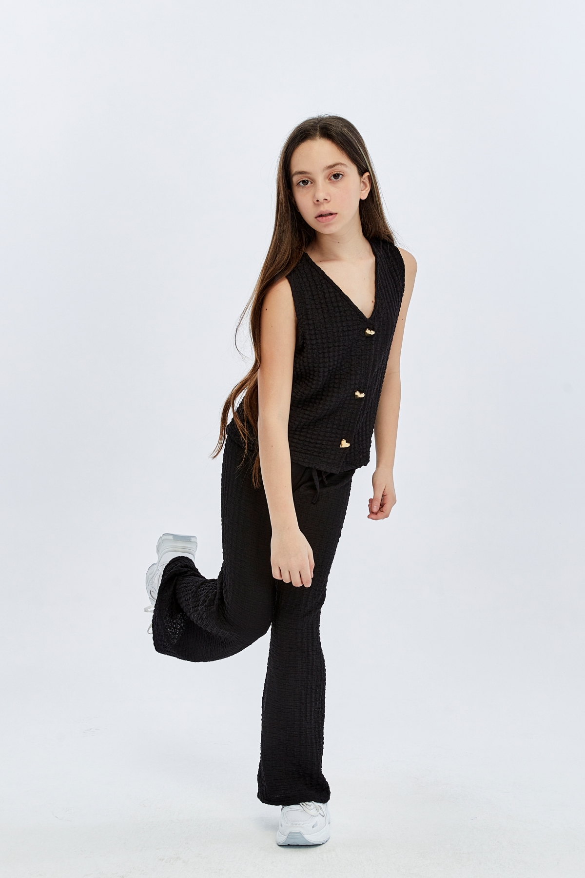26YEM7000013_01 9938-9919 İspanyol Paça 6-14 Yaş Yelek Kız Çocuk Pantolon Takım