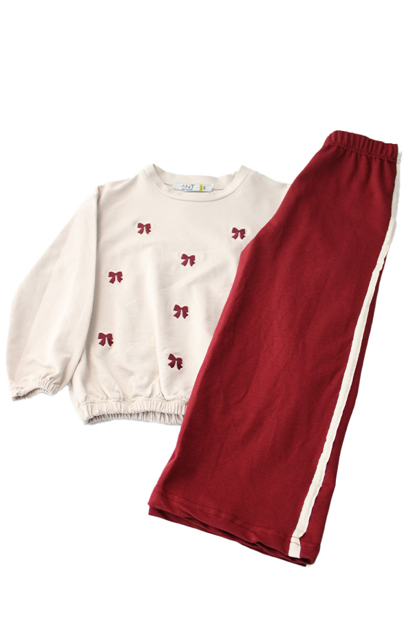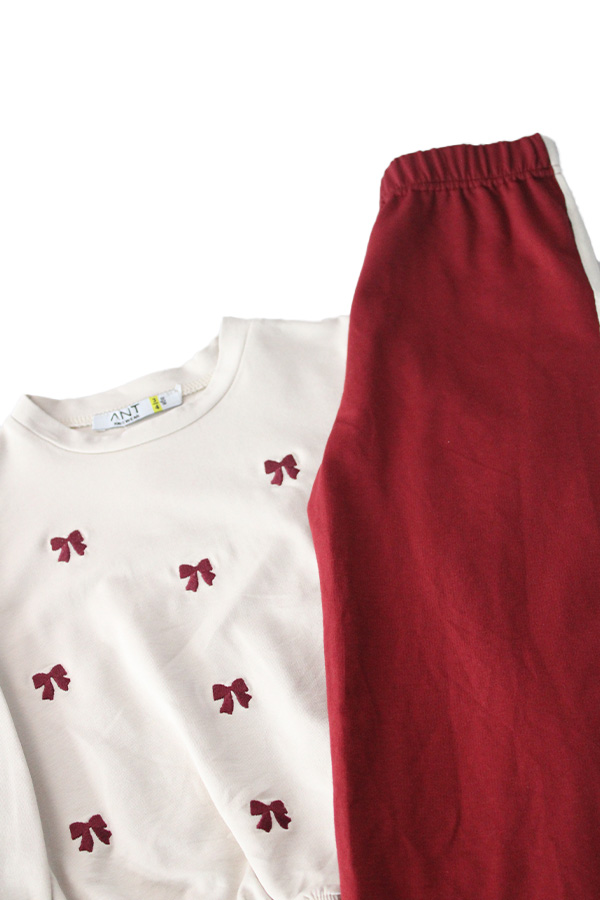9741 3-7 Yaş Fiyonk Nakışlı Şeritli Kız Çocuk Sweat Takım