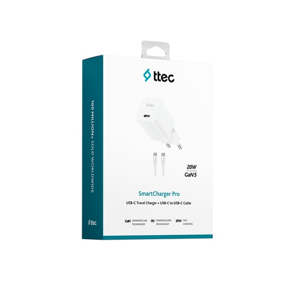 • Ürün Adı : 2SCG20CB ttec SmartCharger GAN20WPD Seyahat Hızlı Şarj Aleti+USB-C-USB-C 60W Kablo Beyaz